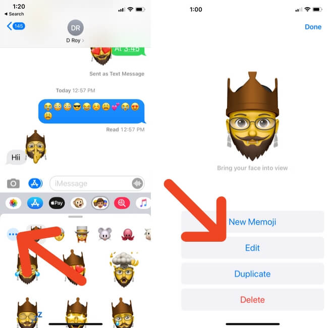 Newly created Memojis will be stored in the same Animoji drawer. If you want to modify the Memoji, then you can tap on three dots on the bottom and tap Edit. To make copies of similar Memoji’s you can tap on the Duplicate option.