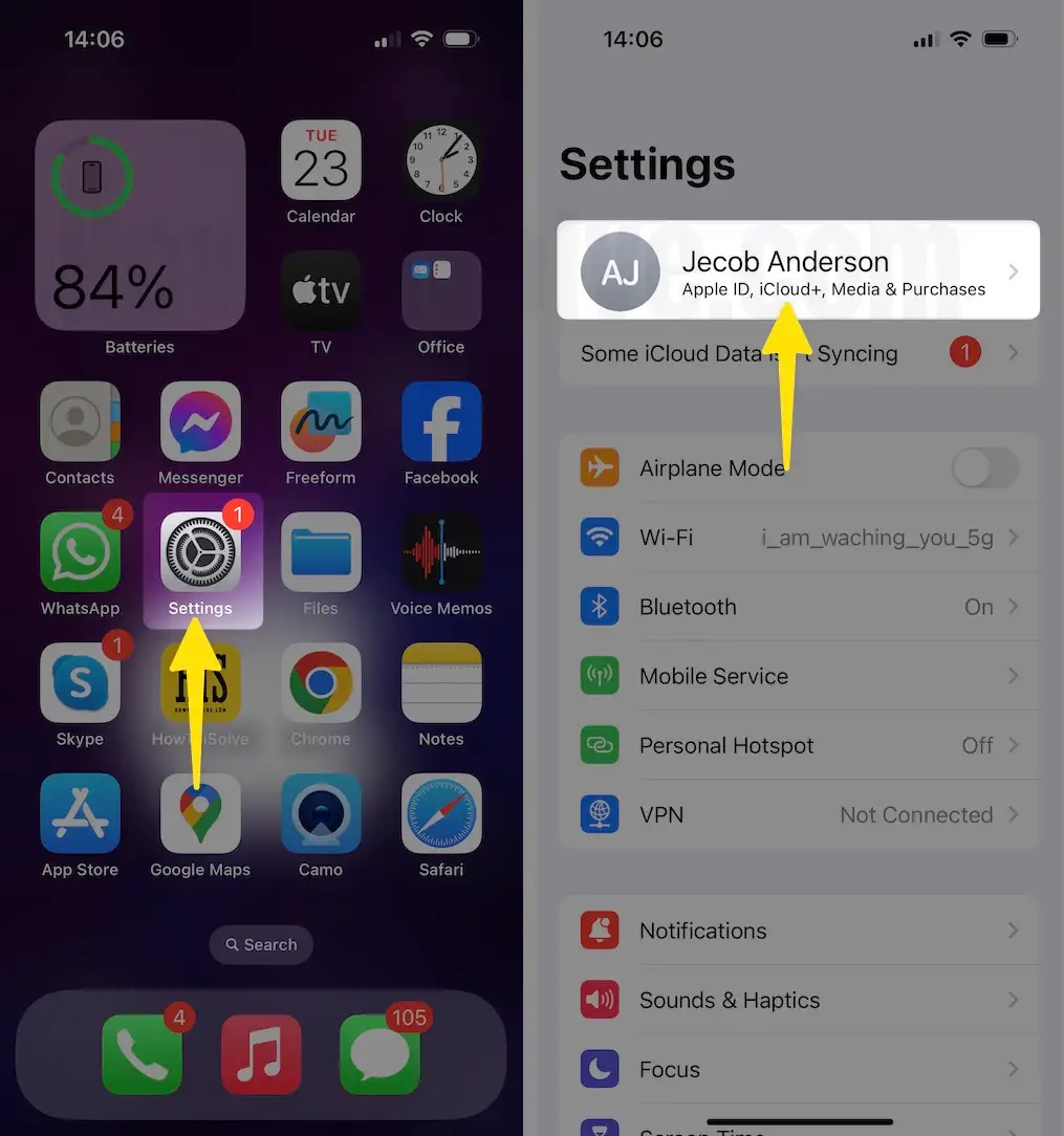 Step 1: Launch the Settings app on your iPhone > Tap on your Apple ID Profile Name.
