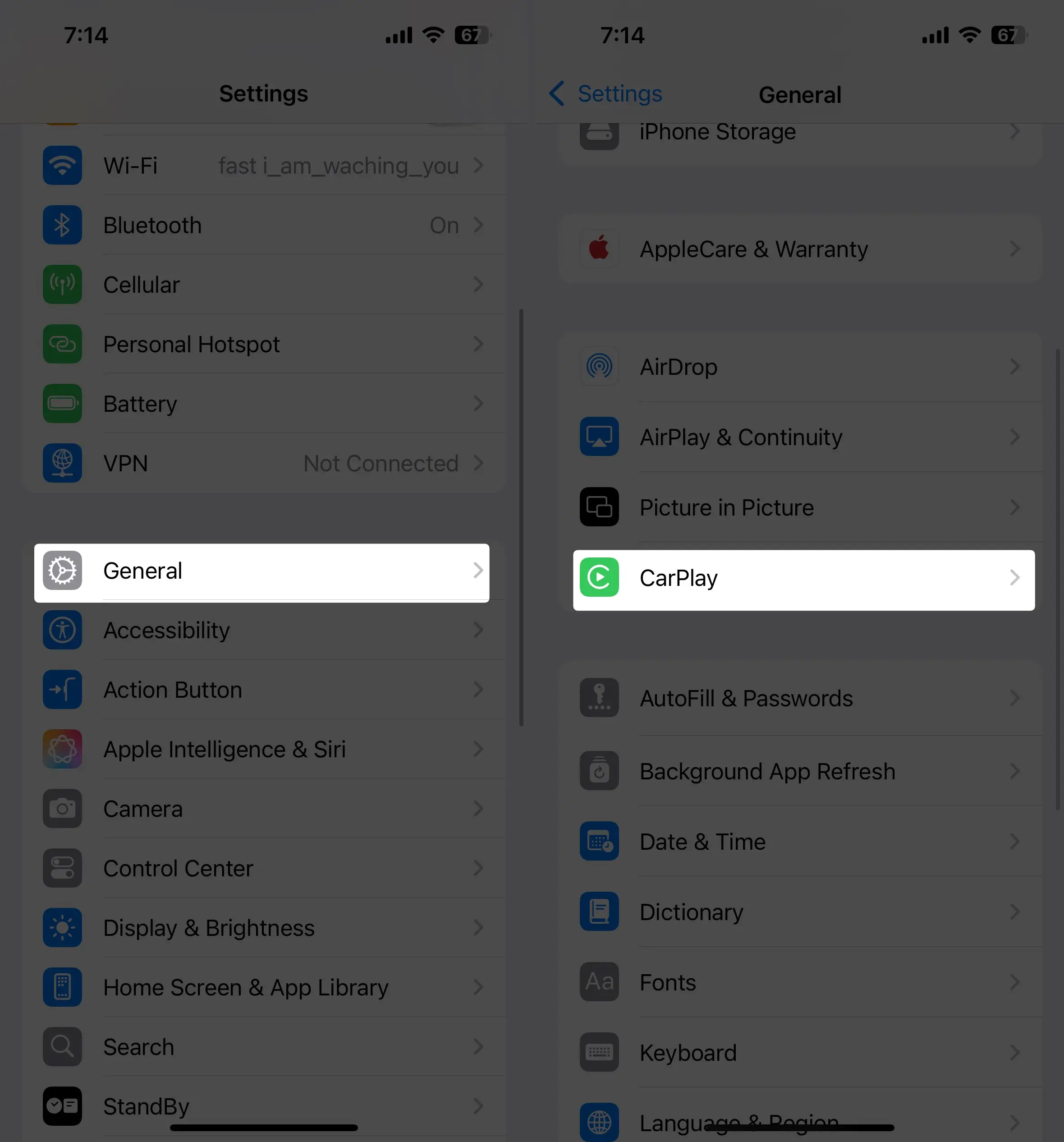 - After that, turn off toggle next to the CarPlay. Wait for a while and then re-enable the toggle.