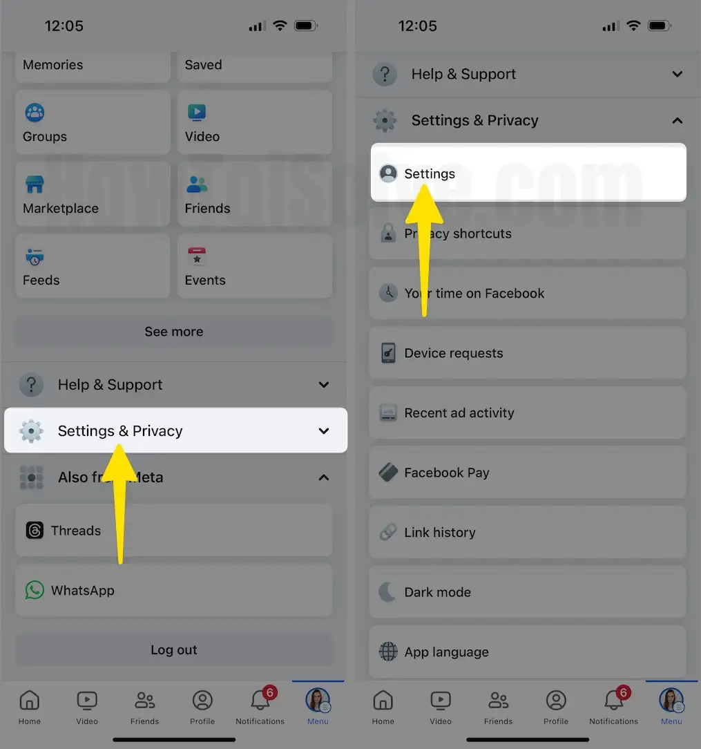 Step 2: Tap on Settings & Privacy > Select Settings.