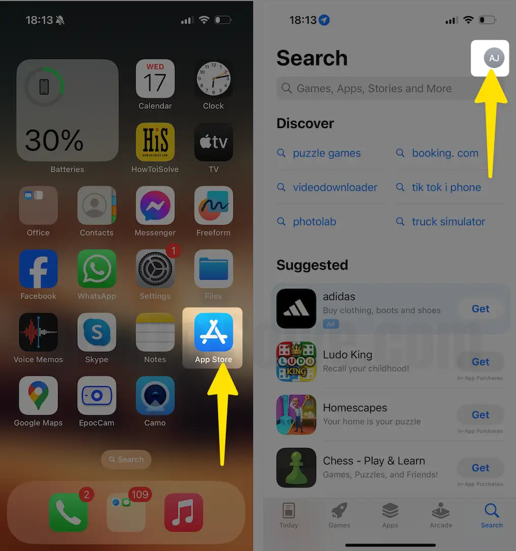 Step 1: Head to the App Store on your iPhone. Tap on the Profile Icon at the top right corner.