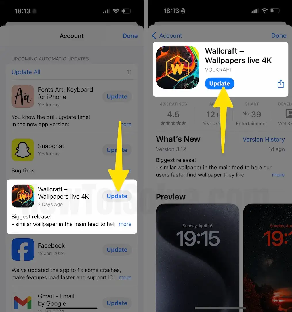 Step 2: Scroll down and tap on the Update Button next to the problematic app. Hopefully, updating the application will resolve the issue. But if not so, move forward to the next solution.