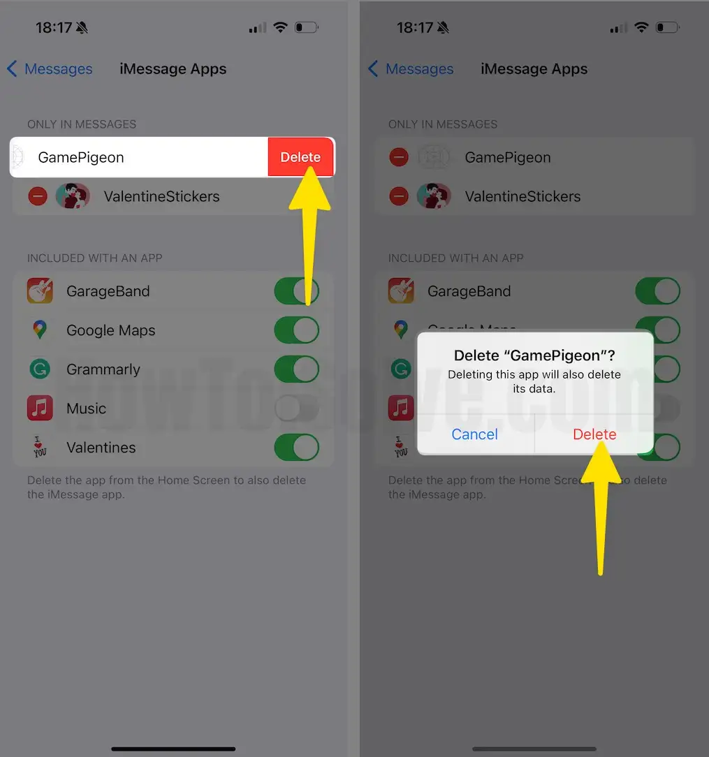 Uninstalling the Game and again reinstalling another way to troubleshoot this problem. But from the messages app, we can only install a game cant delete. To delete a game, you need to visit the home screen.