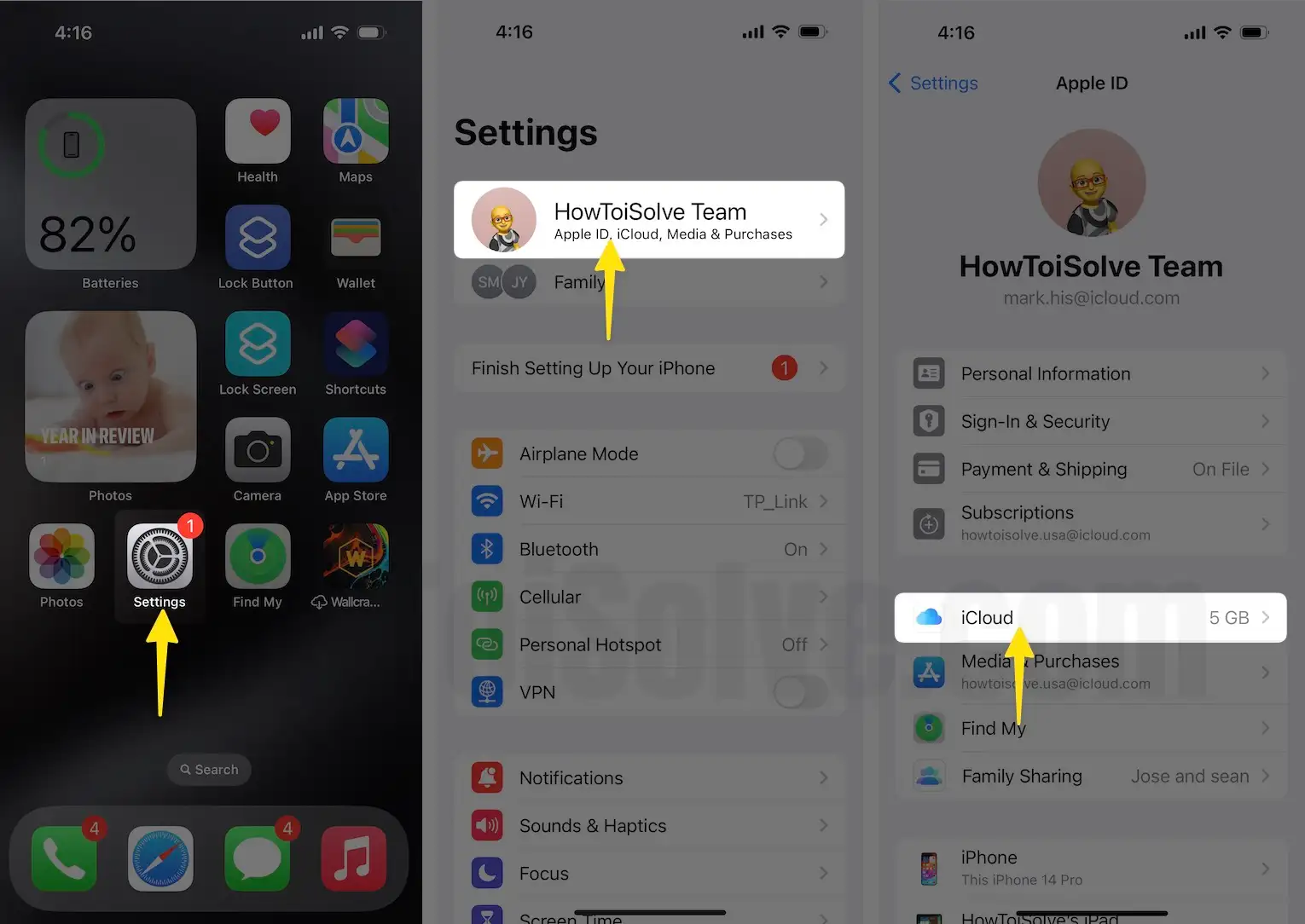 Step 2: Tap on your name (Apple ID Profile Name).