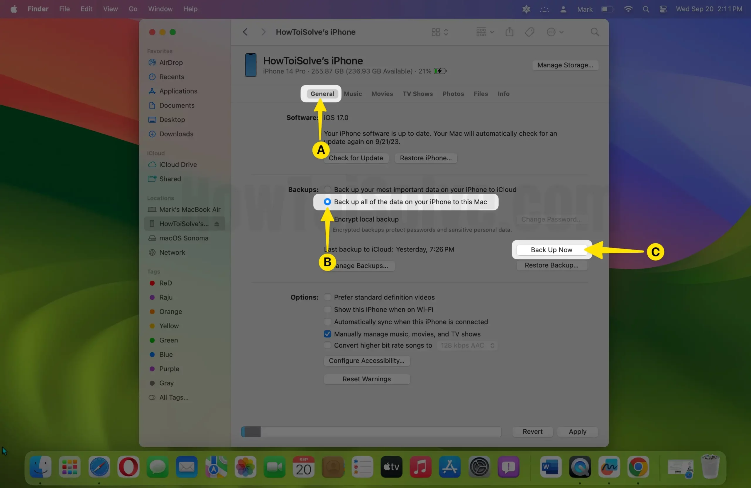 Step 4: Tap on General Tab and then Select “Back up all of the data on your iPhone to Mac”.