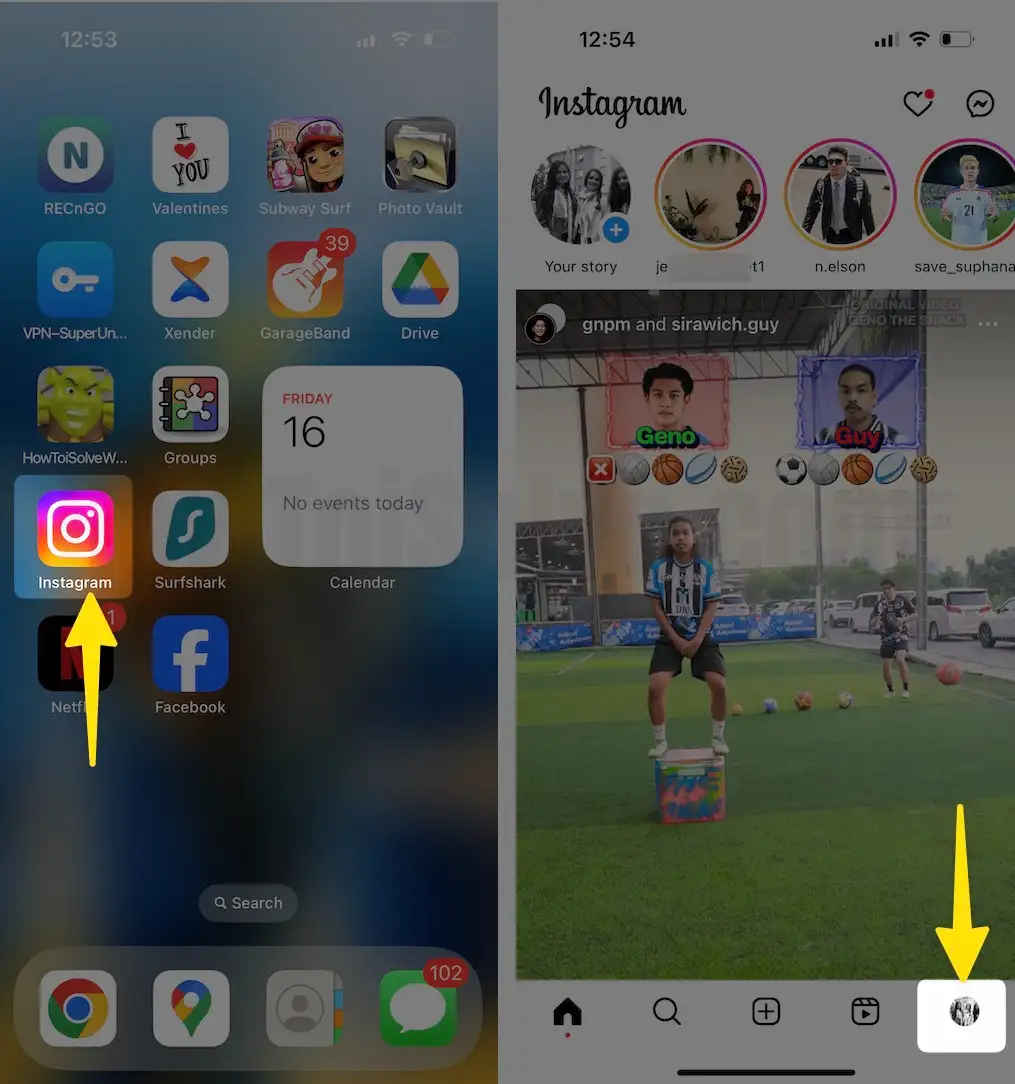 1. Go to the Instagram App. On the lower-right screen, tap on your profile icon.