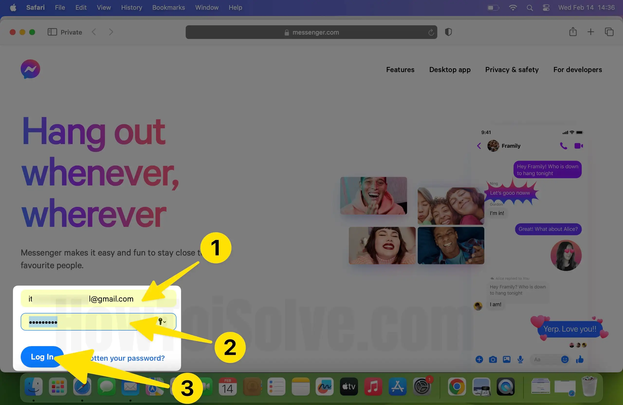 Step 1: Log in to your messenger account on any web browser on your Desktop. Login with your username and password.