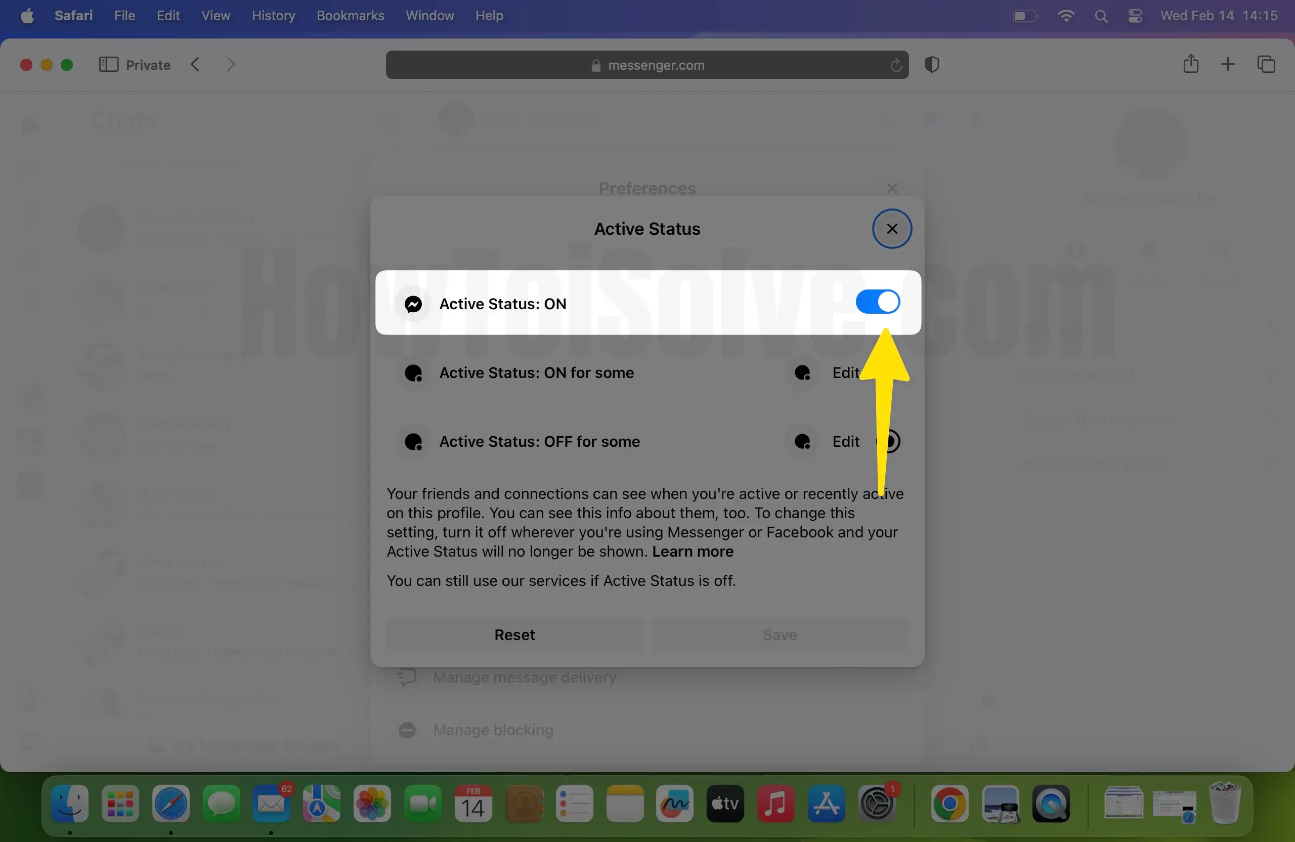 - Now you can see a green toggle next to the show when you’re active, in addition, Turn to the left side to turn it off.