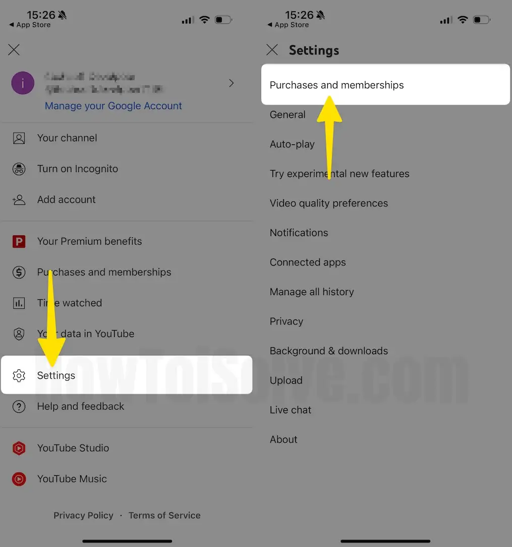 Step 2: Tap on Settings > Select Purchases and Memberships.