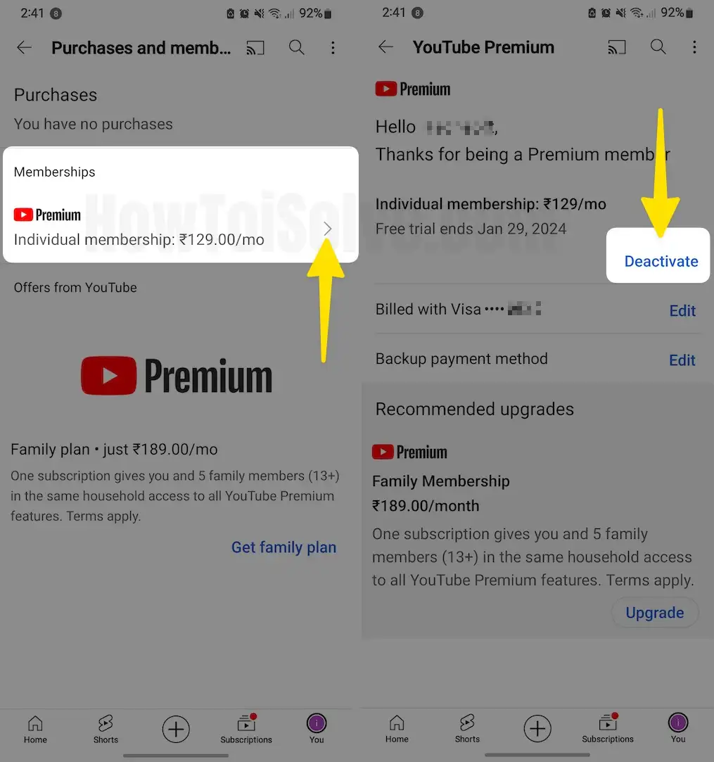 - If you have subscribed from the YouTube iOS app, you can deactivate your paid membership from Apple ID.