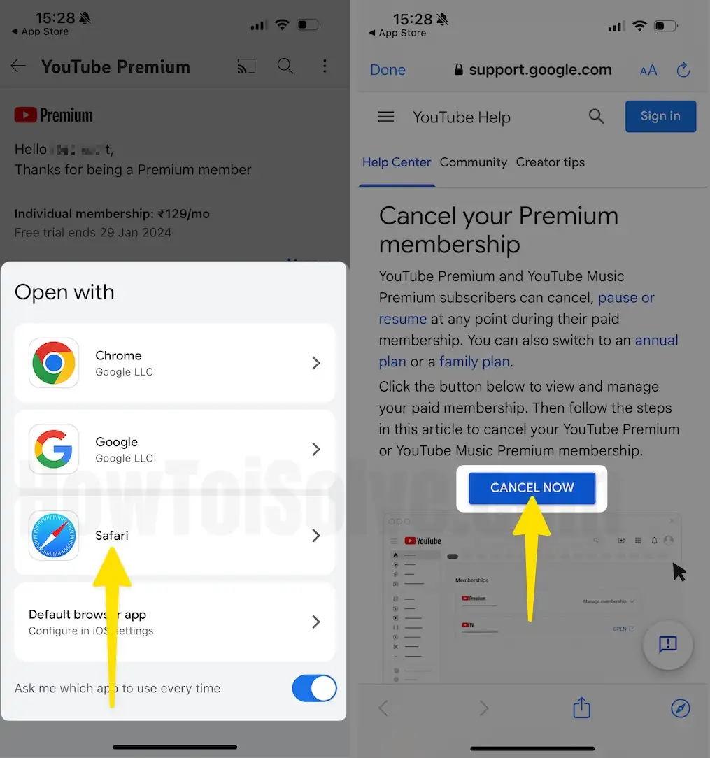We recommend that you don’t have to wait until completing the free YouTube Premium Membership. But if you don’t agree to continue with YouTube Premium in the future, then you must follow the given steps to turn off the Auto-renewal YouTube Premium membership on iPhone, iPad (iOS and iPadOS), or Mac computer.