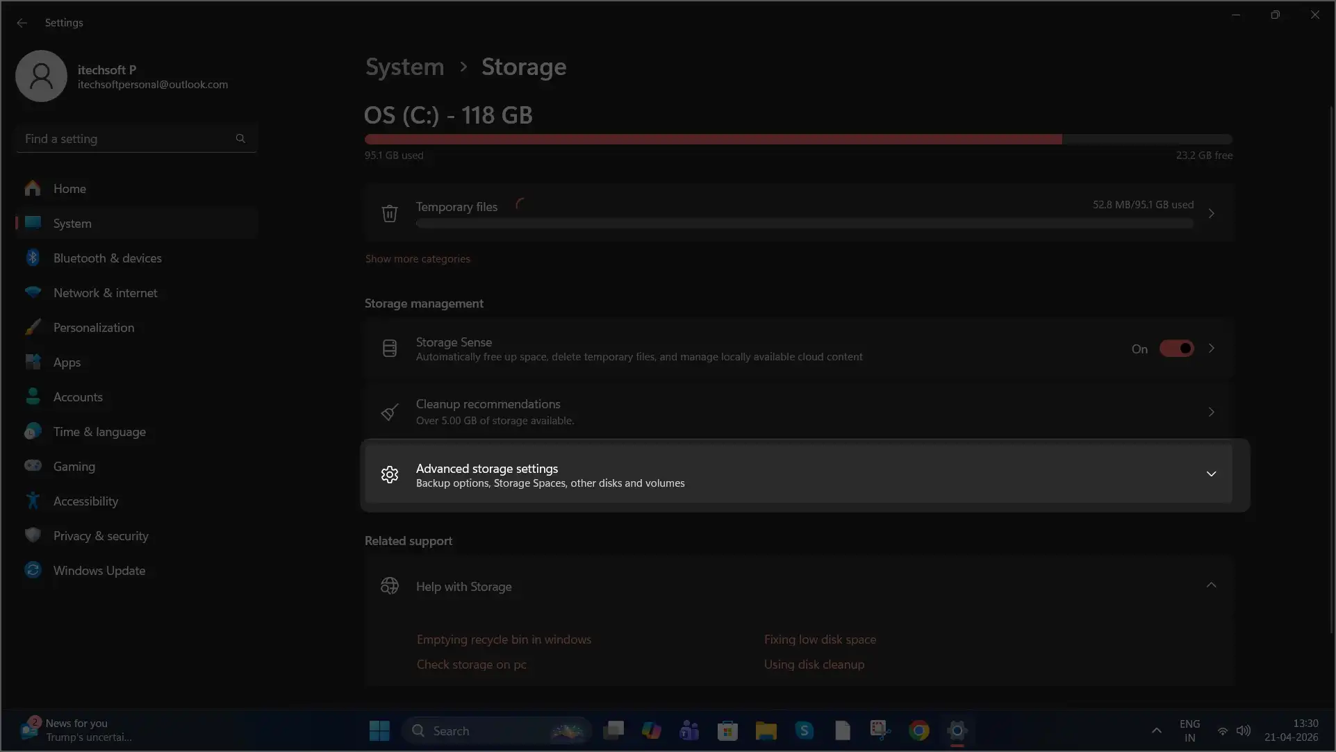 - Select Advanced storage settings