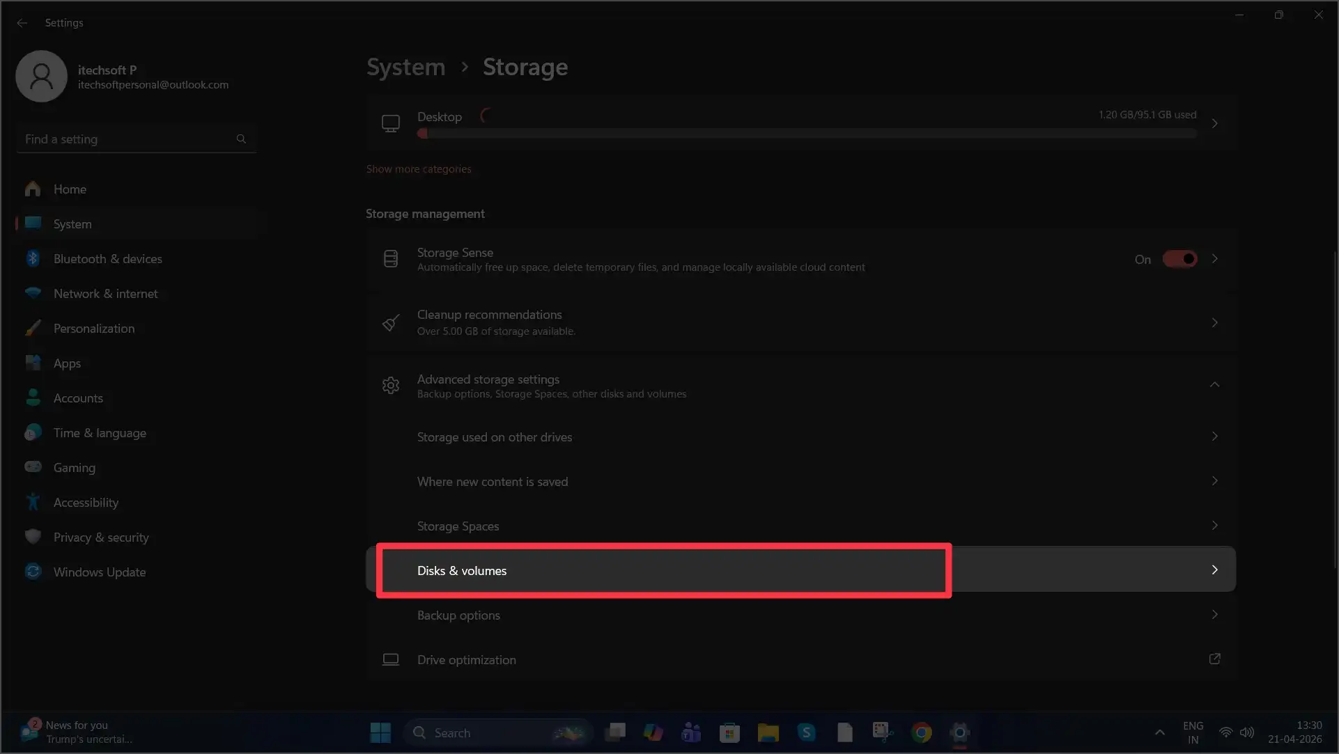 - Click Disks & volumes