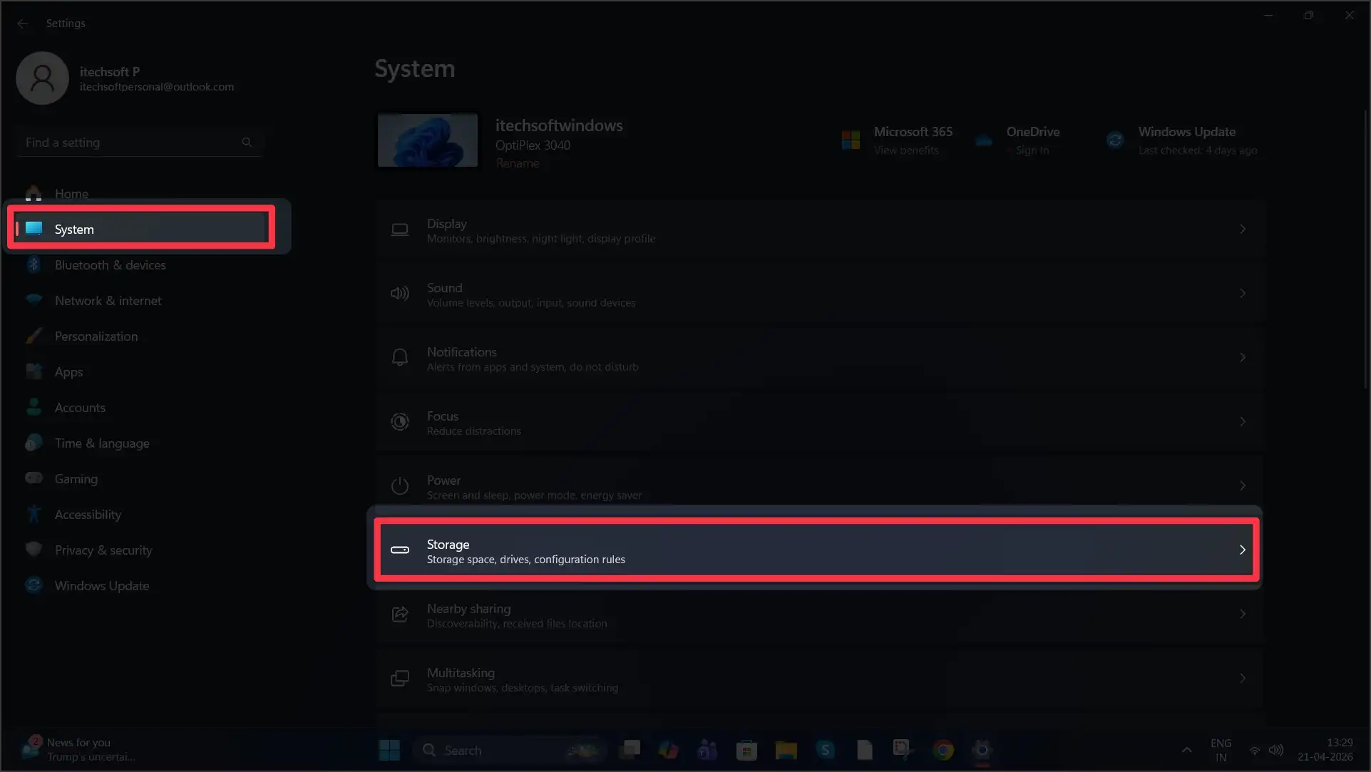 - Click on Storage