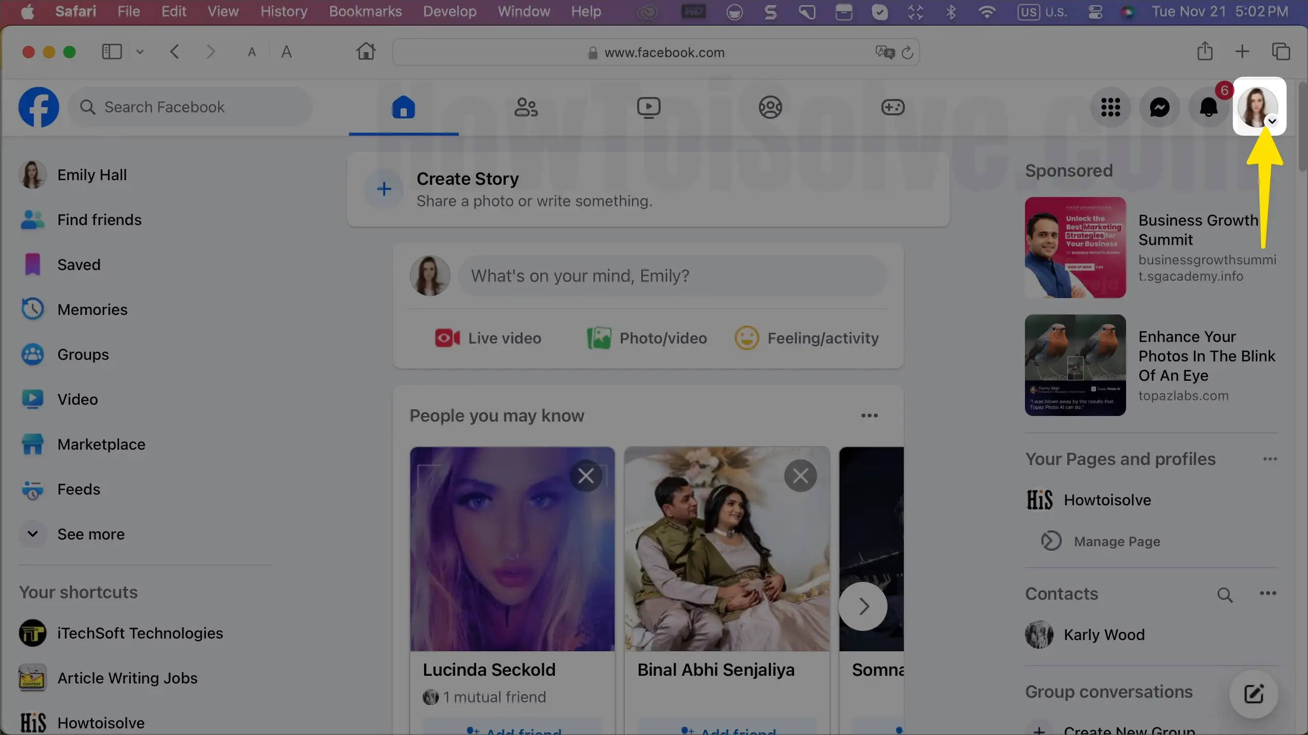 2. Click on your name on the upper-right side or in the side panel to visit your Profile.