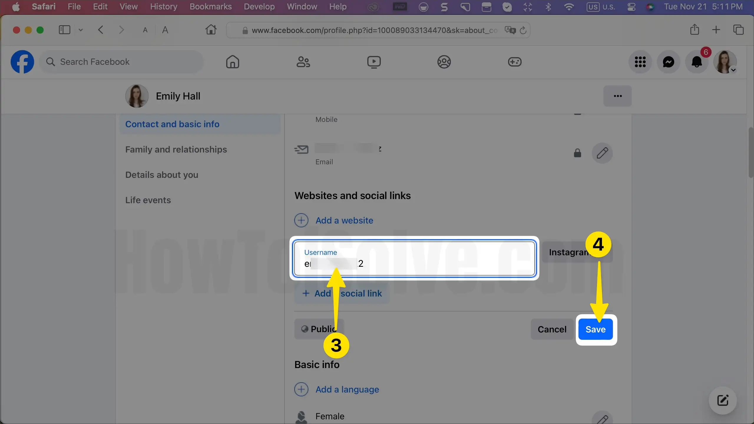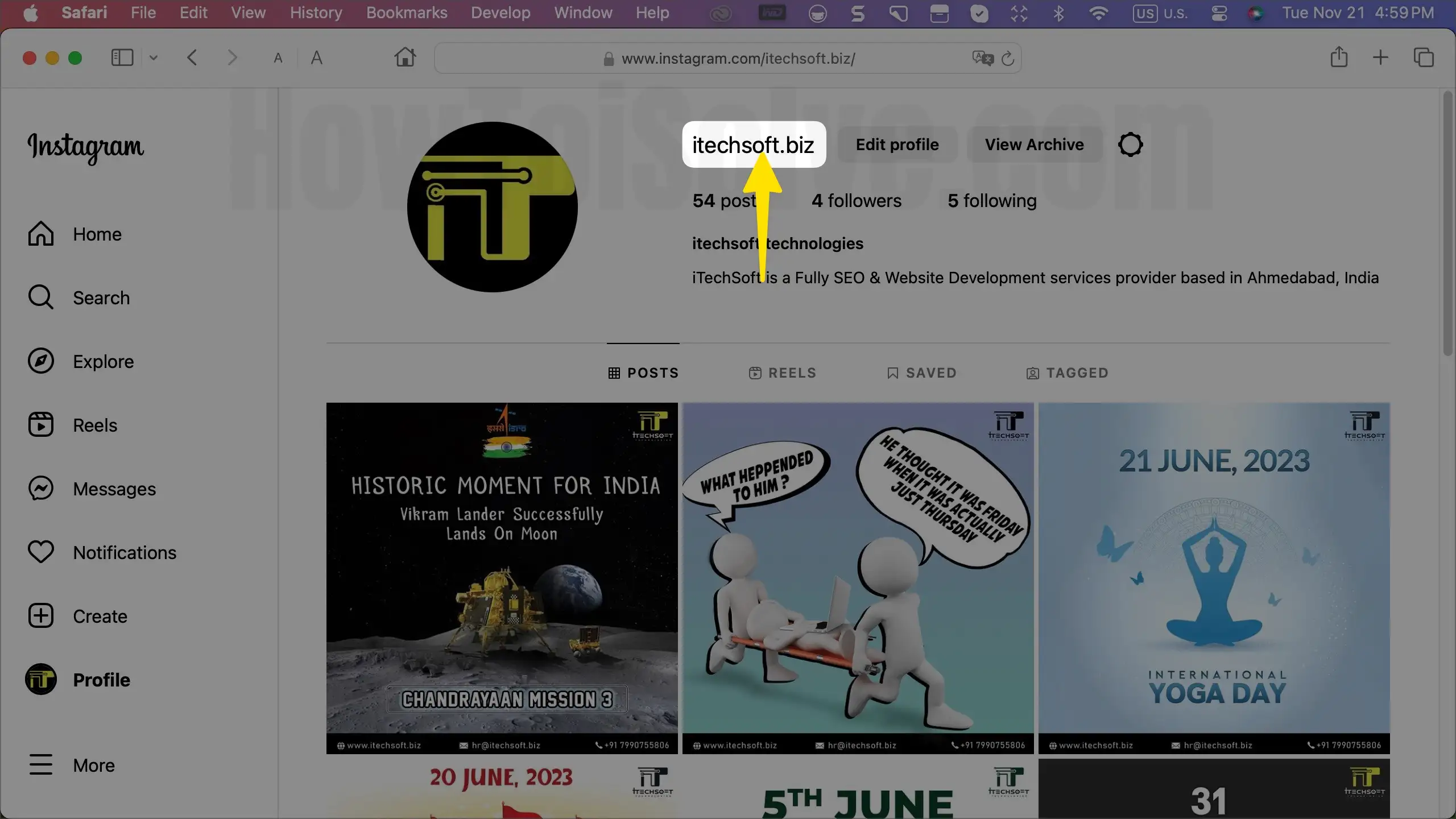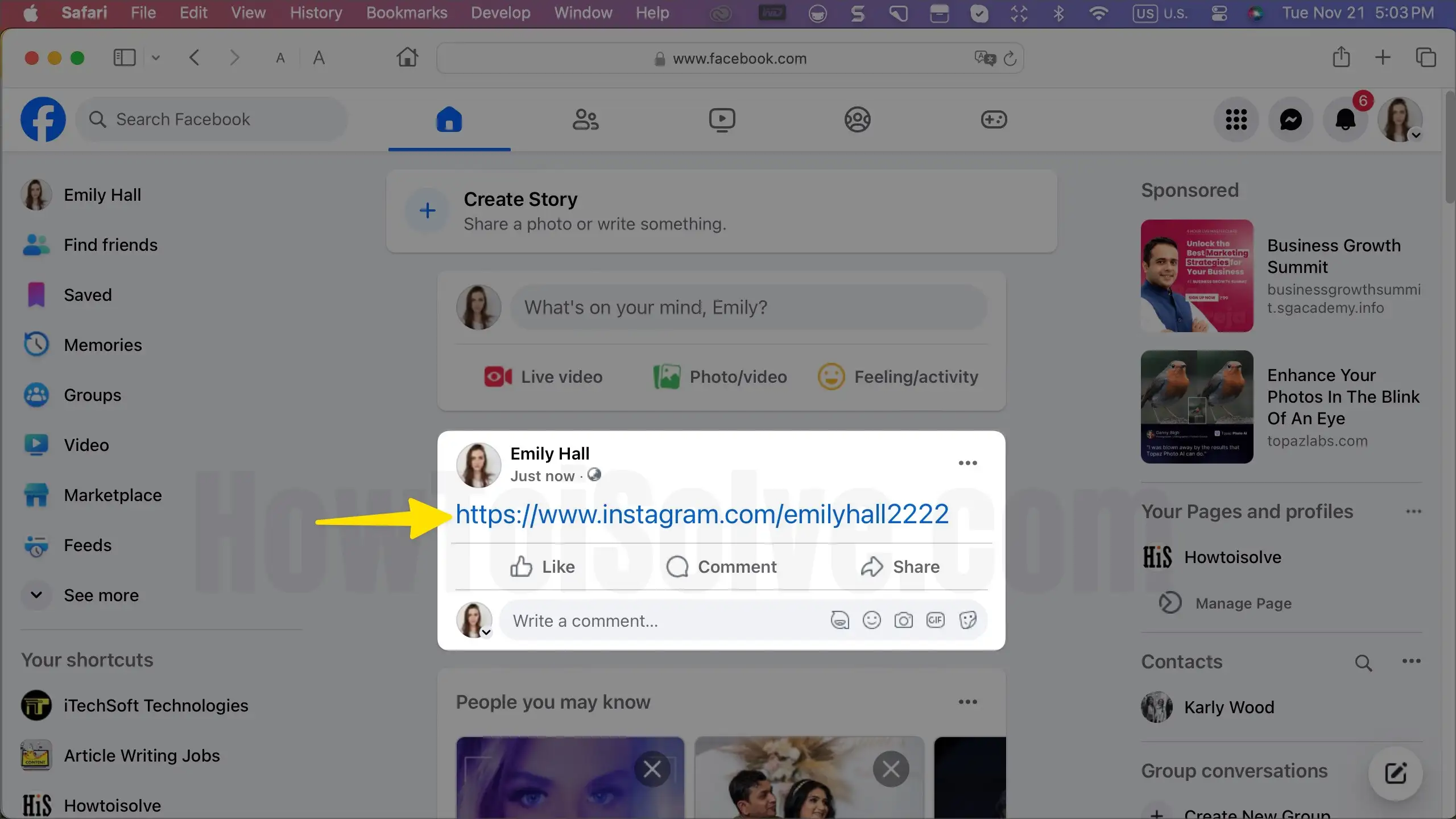 6. Next add your Instagram username behind the URL. It should look like https://www.instagram.com/howtoisolve/.