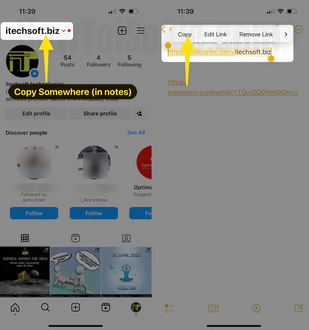 Our step-by-step guide will show you how to share the Instagram profile link of your own account. The easiest way to share Instagram profile links on your other social media profile bio such as YouTube, WhatsApp, Snapchat, Clubhouse app, etc.,
