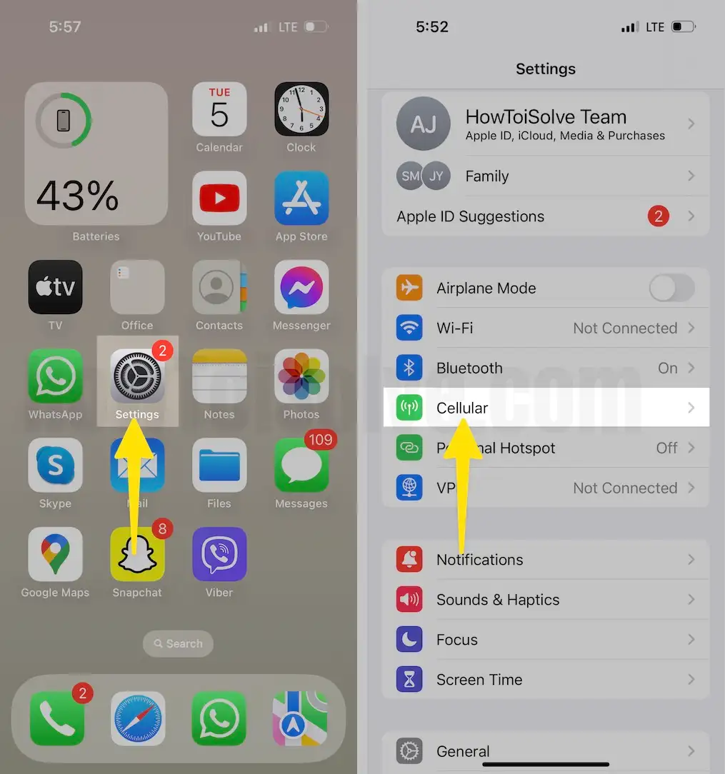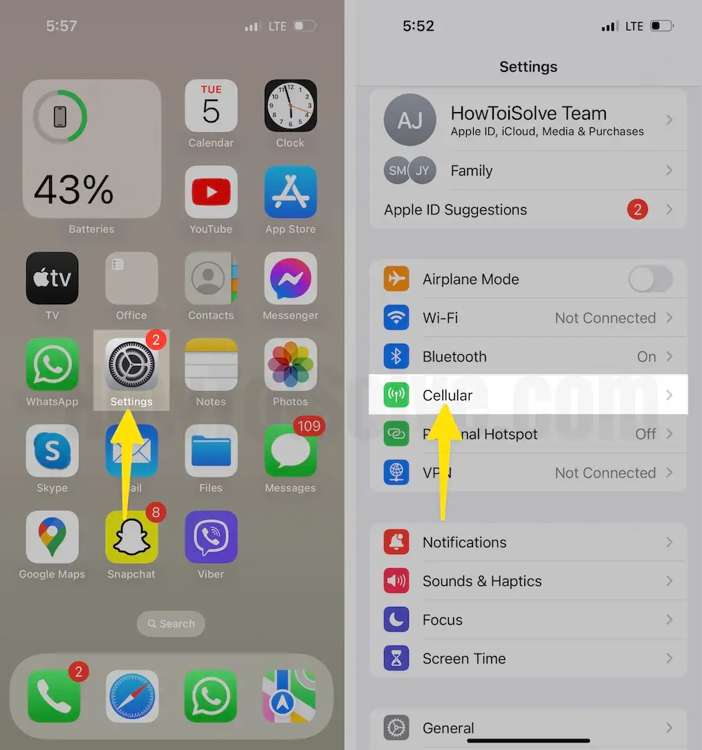 - Tap on Cellular.