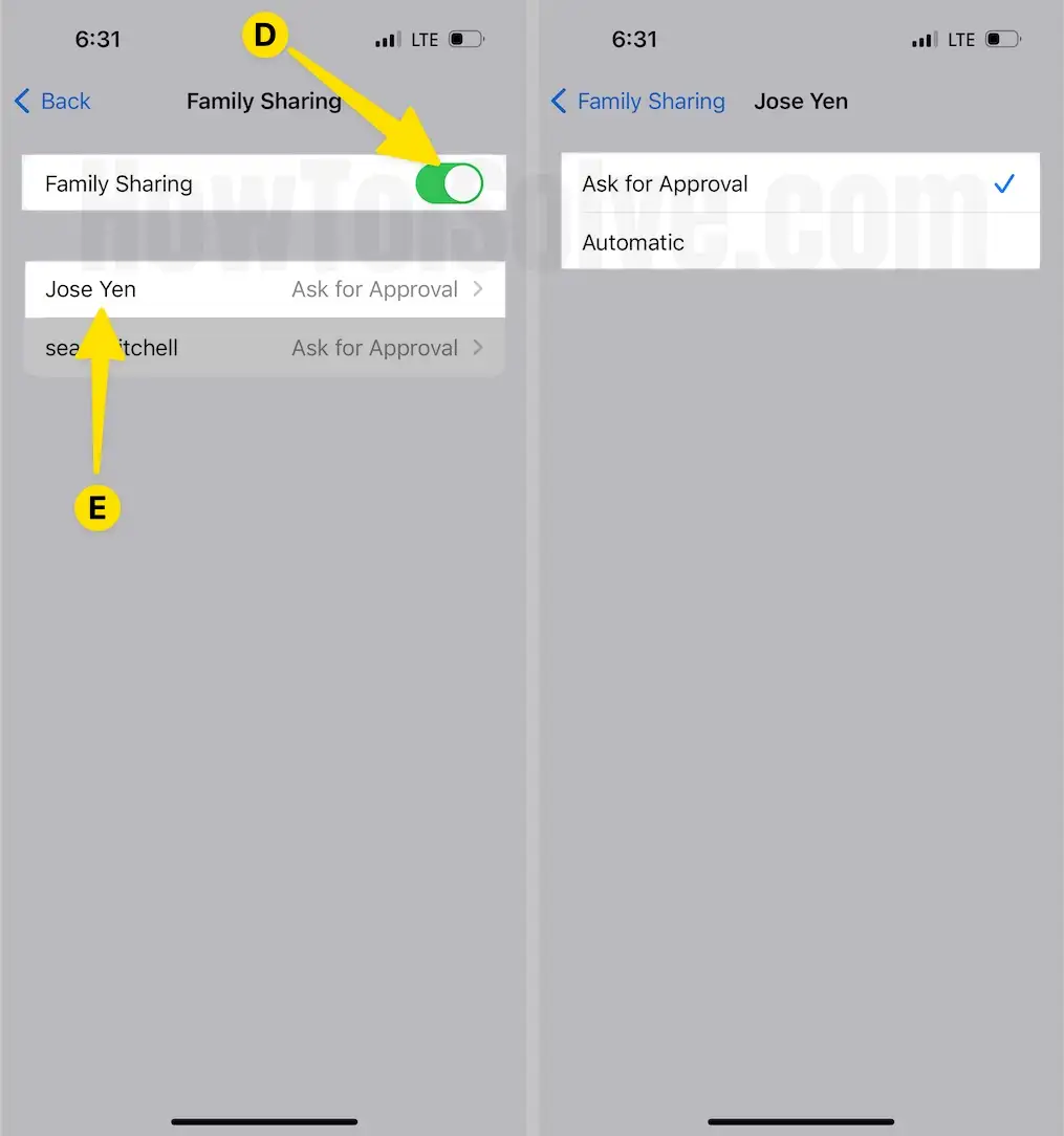 - Enable Family Sharing. The whole list of Family Sharing can be customized. Choose the Family Person, to change settings.
