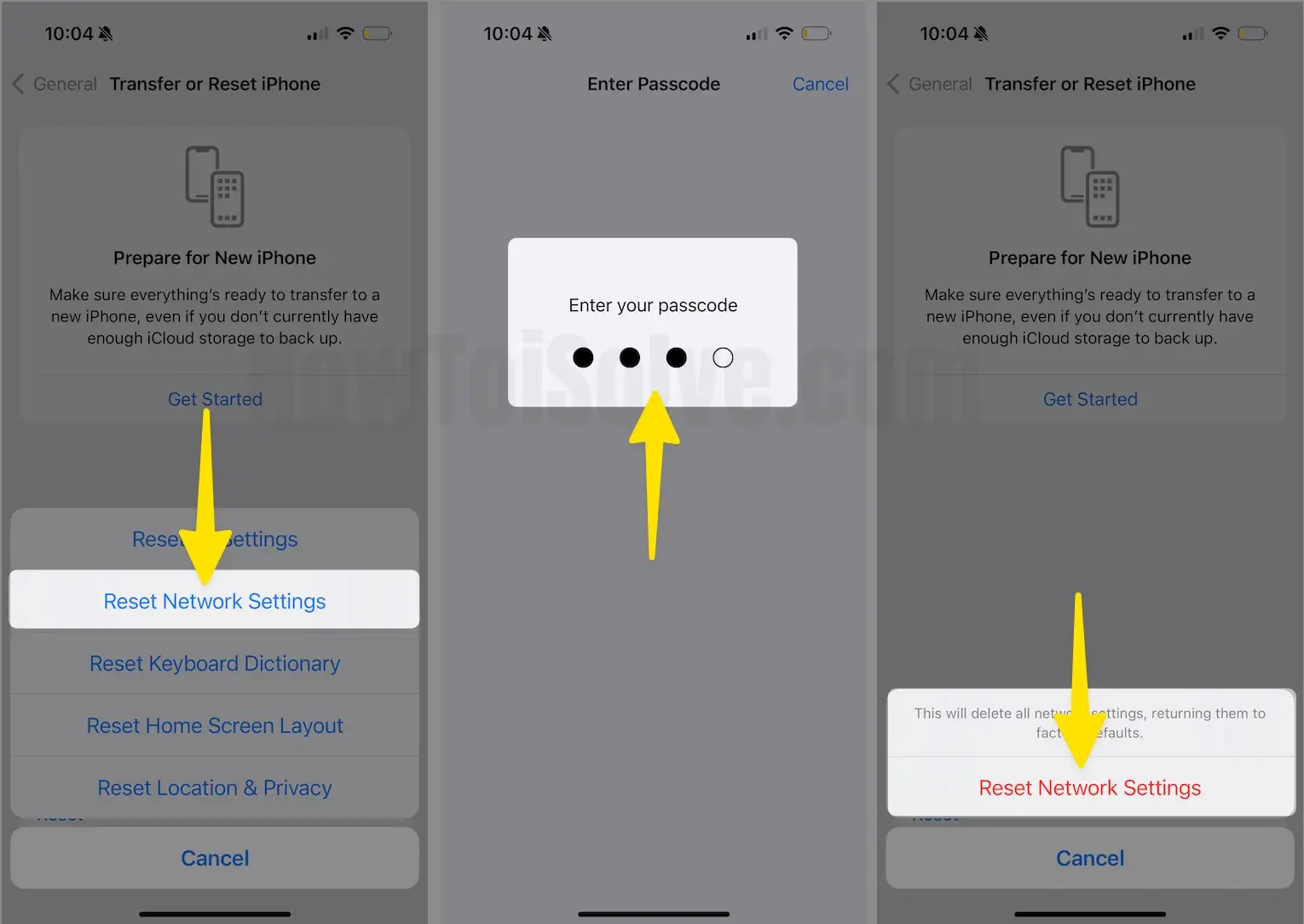 - Select Reset Network Settings for the Confirmation.