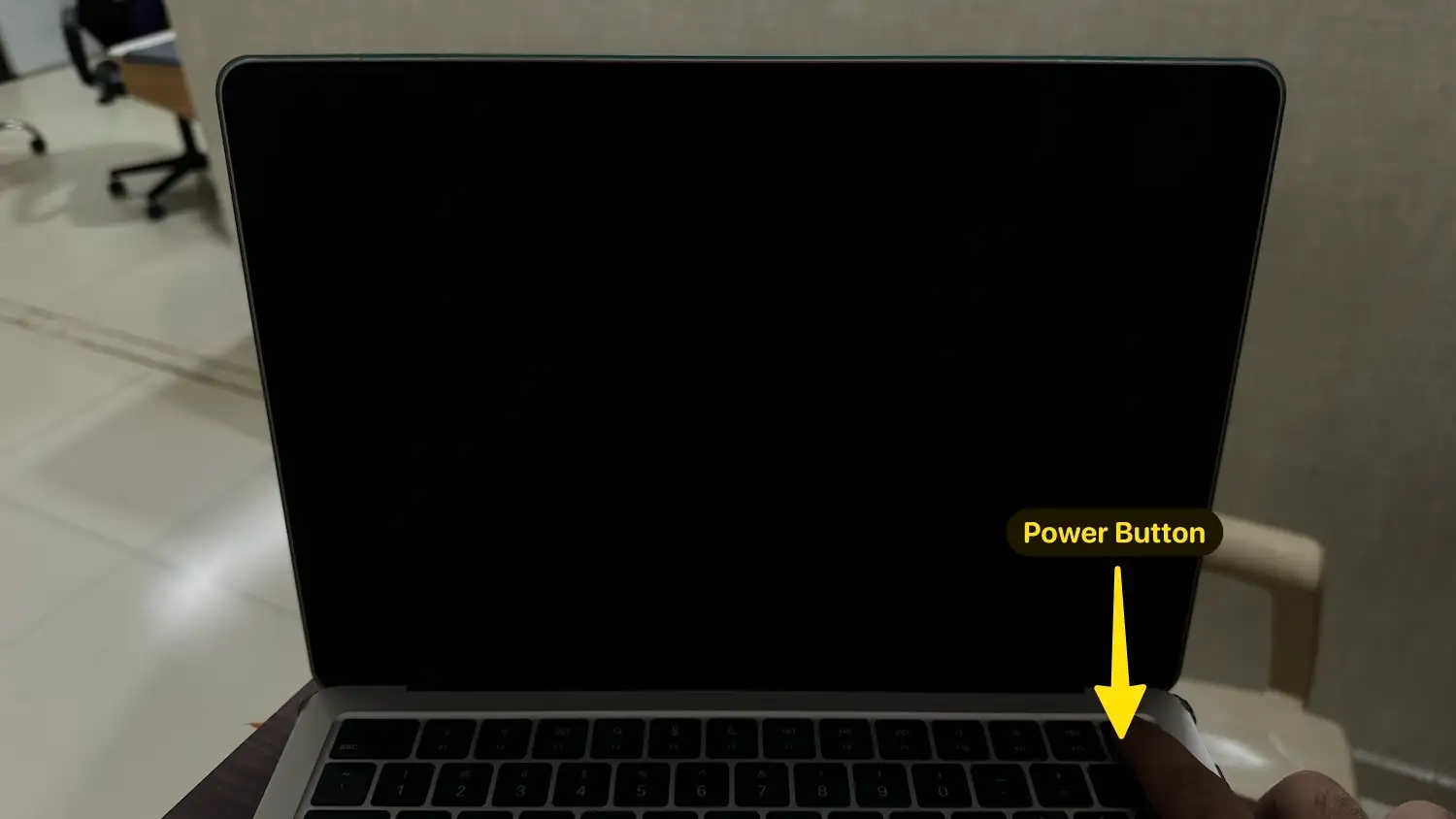 - For Apple Silicon: Hold the Power button until the startup volume appears.