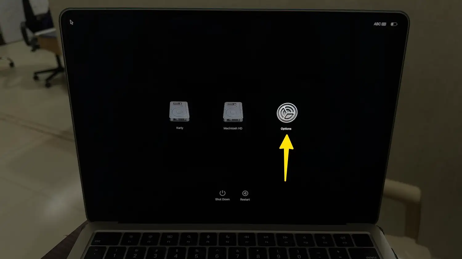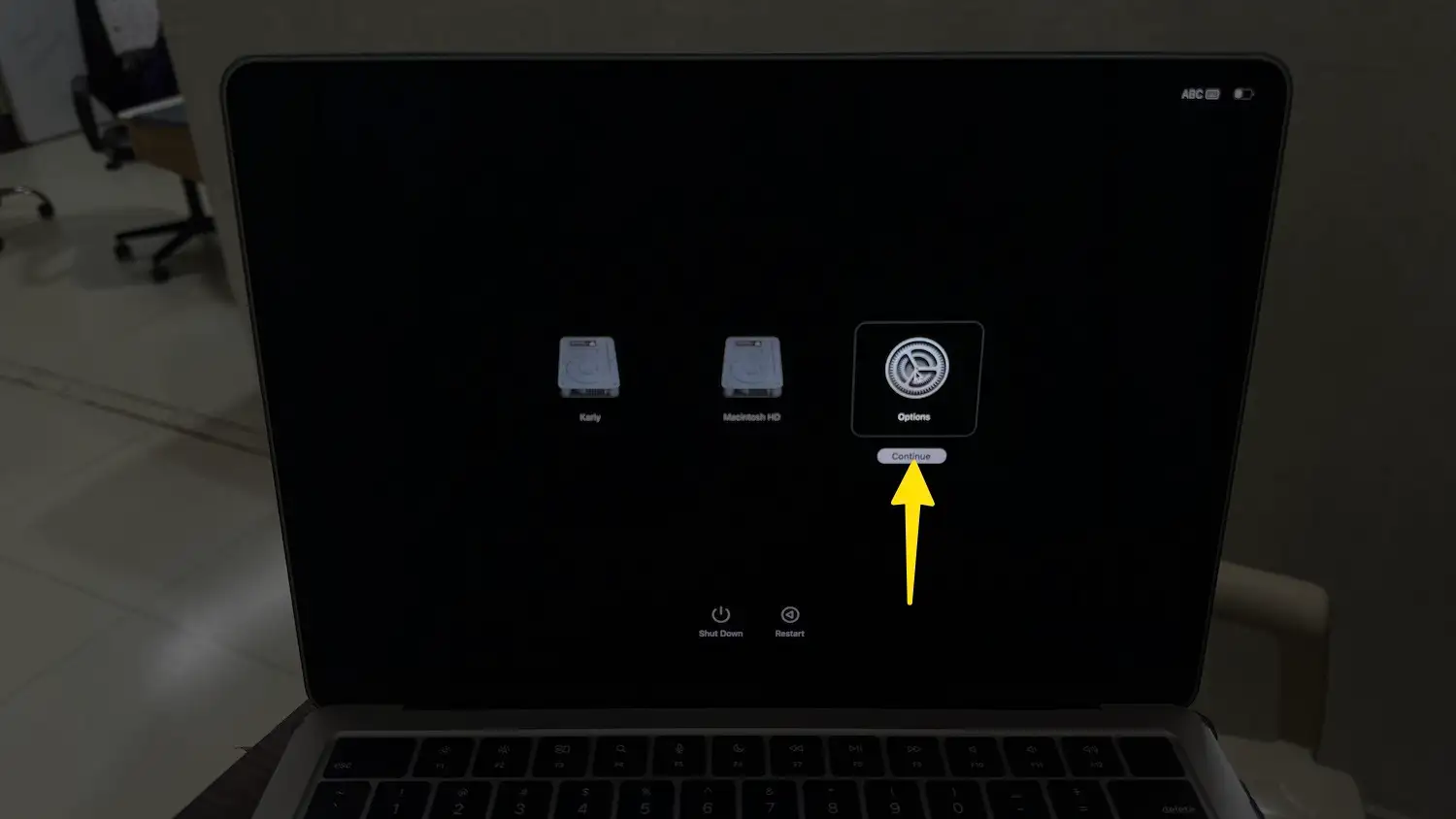 Step 2: After this, Press and hold the Power Button on your Mac until the System Volume and Options buttons appear on the screen.