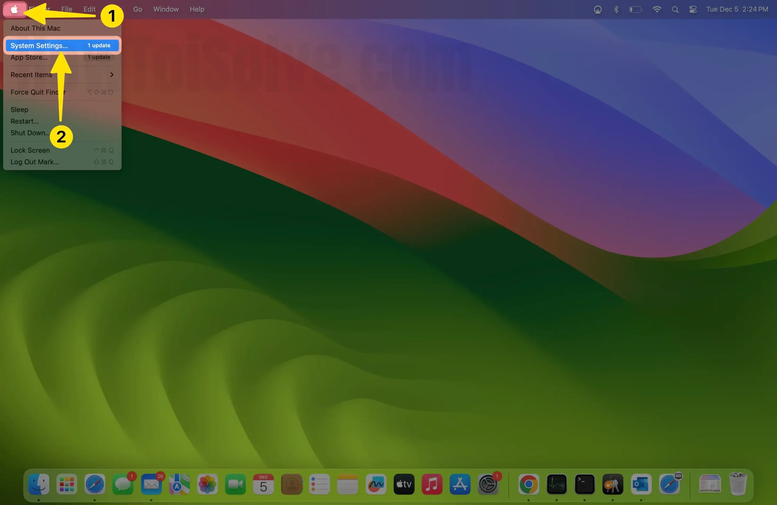 1. Click on the Apple Logo and select System Settings… on Mac.