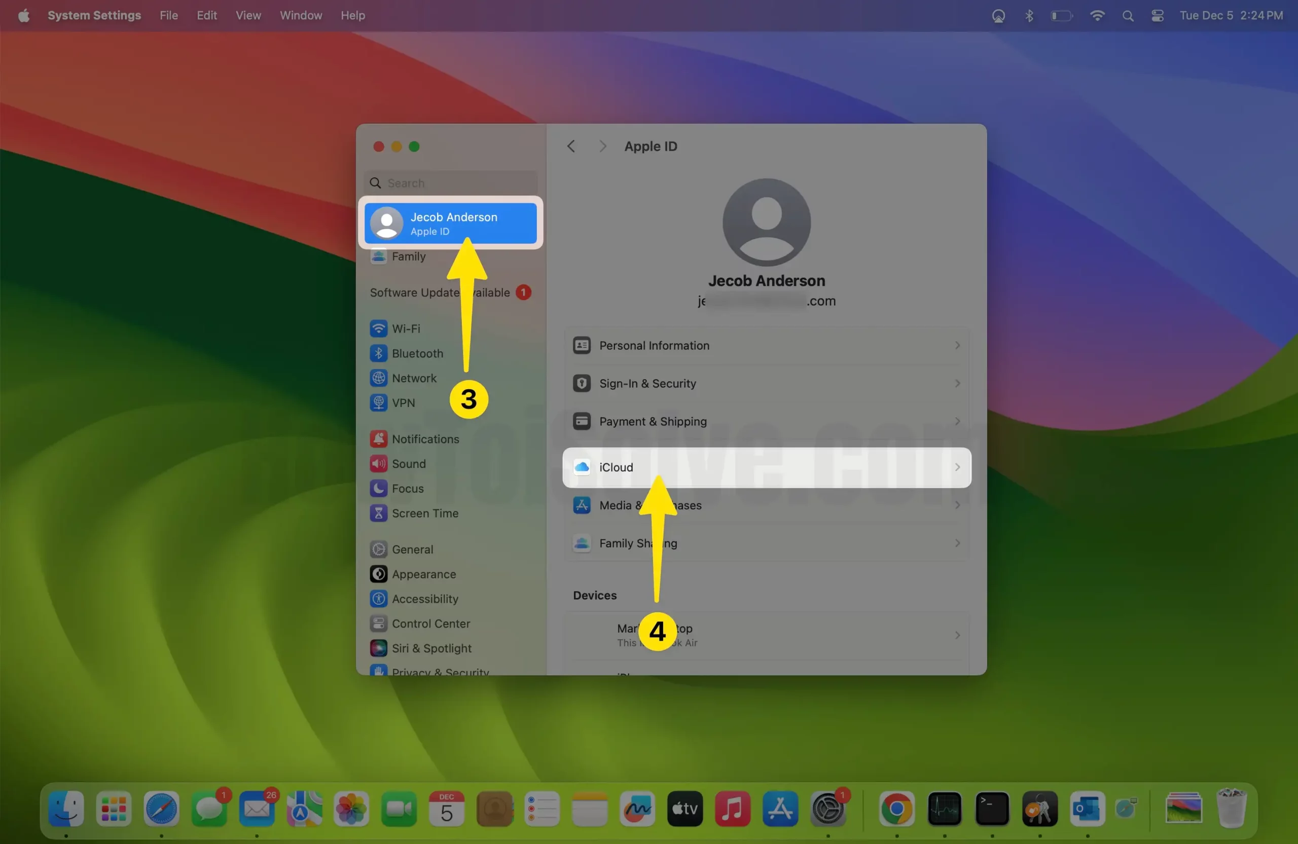 2. Click on Apple ID Name, then select iCloud for Mac.