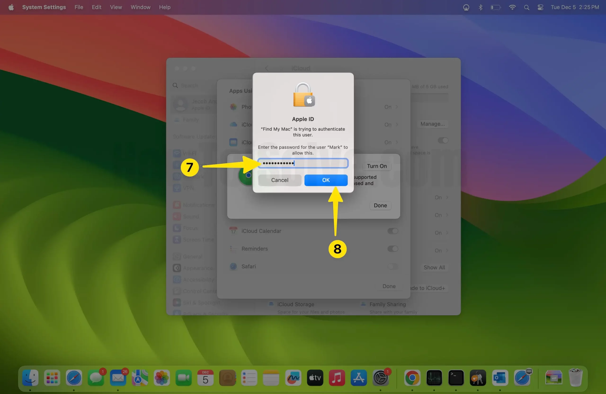 - macOS Ventura: Go to the Apple Logo > System Settings > Click on the Profile name > iCloud > Enable the toggle “Find My Mac”.