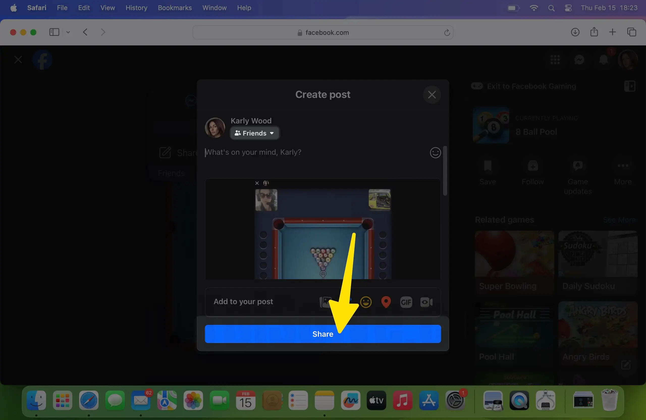 8. Now, you can share your game score on your facebook feed with your friends, So go with SHARE on the right side.