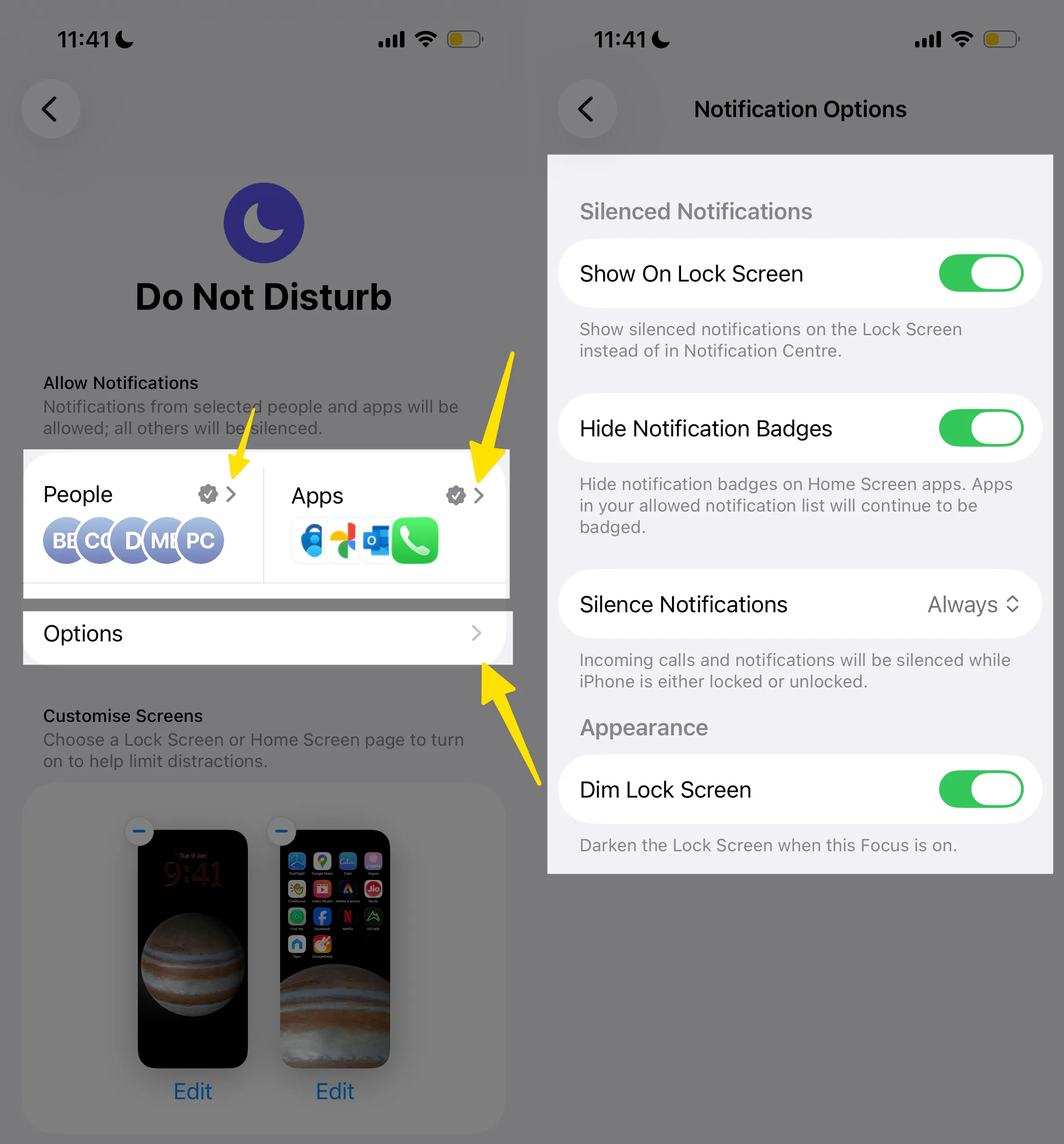 - Allowed Notifications: Choose people or apps that can still reach you even when Do Not Disturb is enabled.