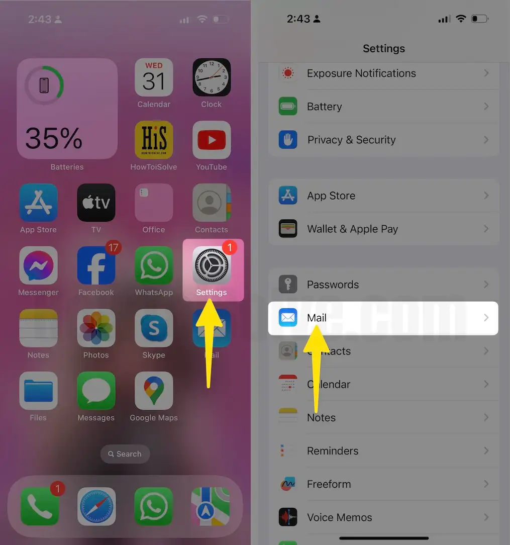 Step 1: Launch the Settings app on your iPhone > Swipe Down to Tap on Mail.