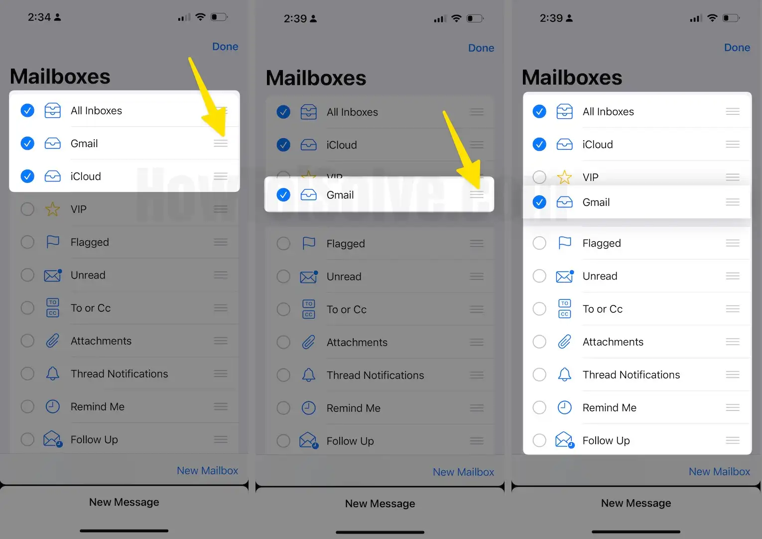 Step 2: Re-order the Mailbox using the Three Verticle Line Icon.